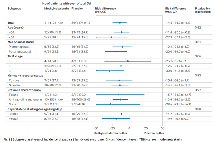 Effect of methylcobalamin on capecitabine induced hand-foot syndrome in patients with HER2 negative early breast cancer: multicentre, double blind, randomised, placebo controlled, phase 3 trial